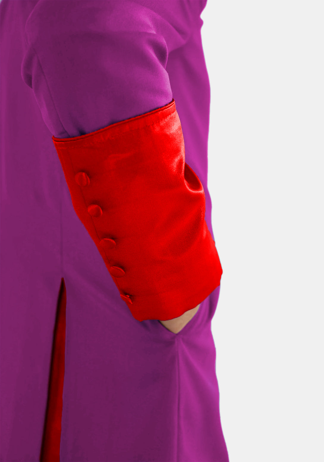- Detaillierte Knöpfe: Rote, stoffbezogene Knöpfe verzieren die vordere Knopfleiste, mit 5 Knöpfen an jeder Manschette.