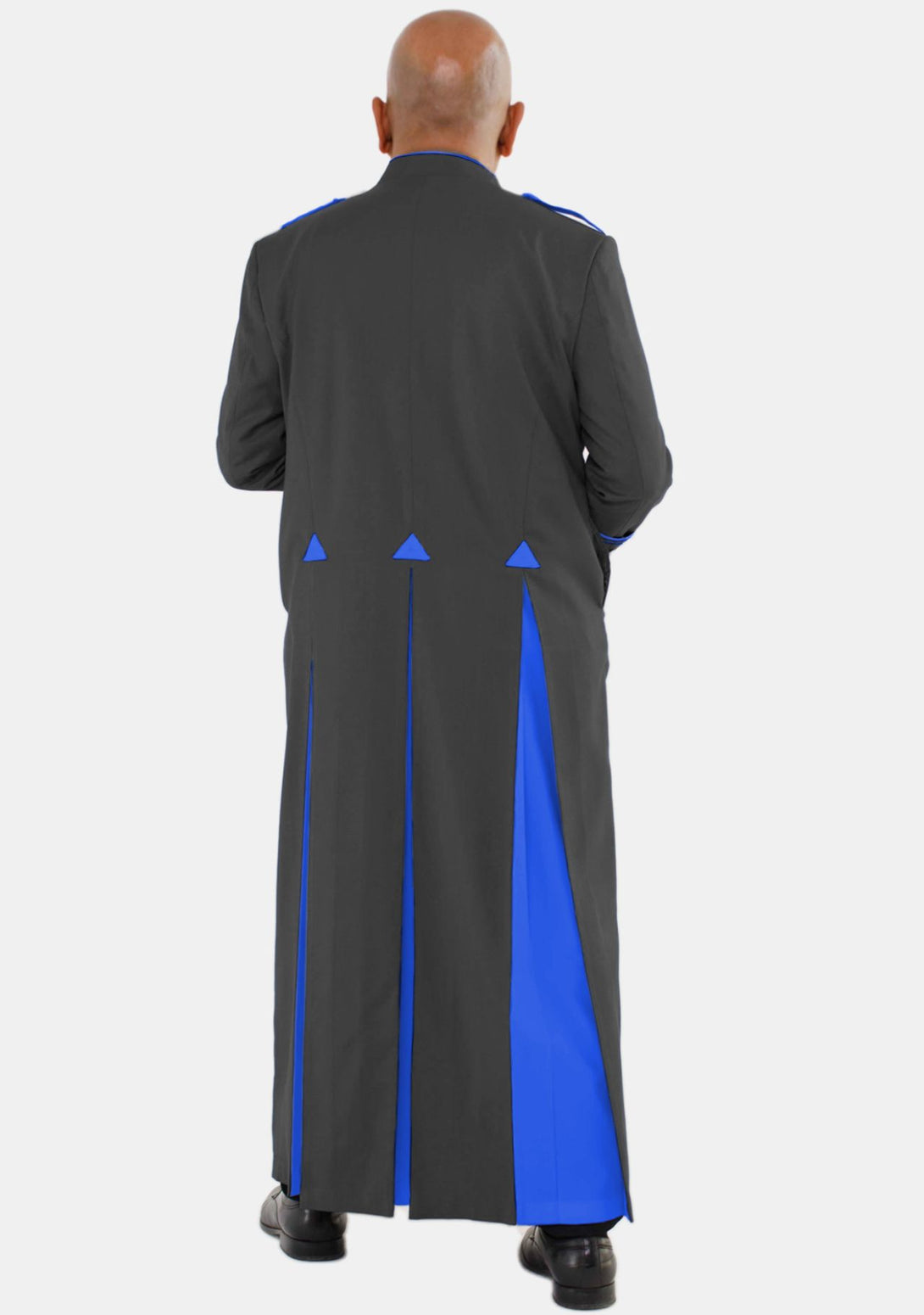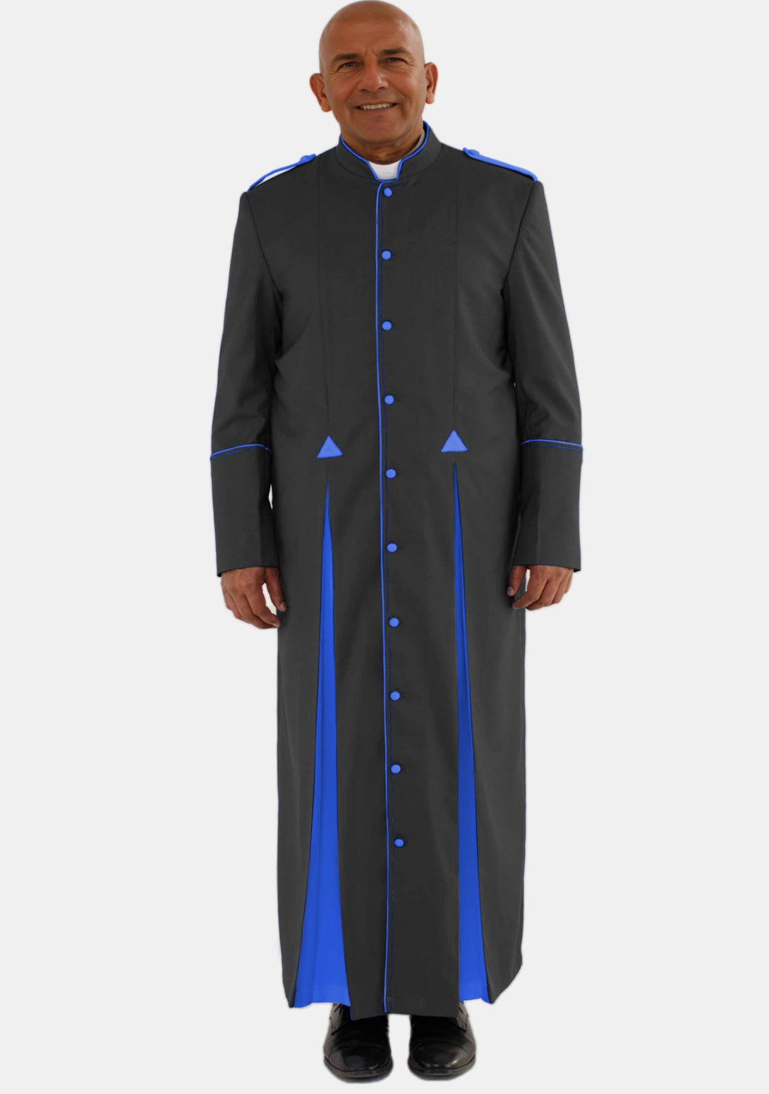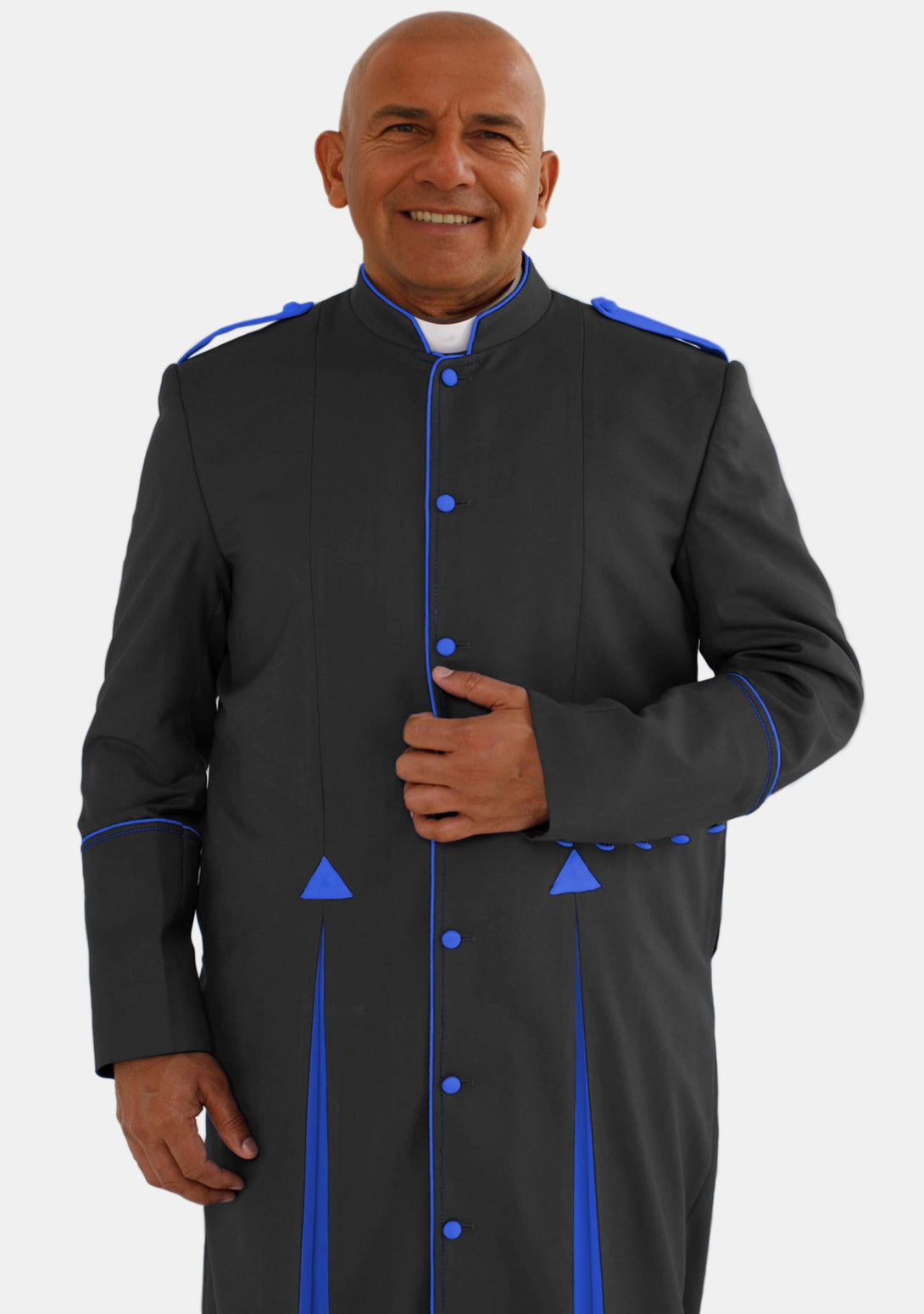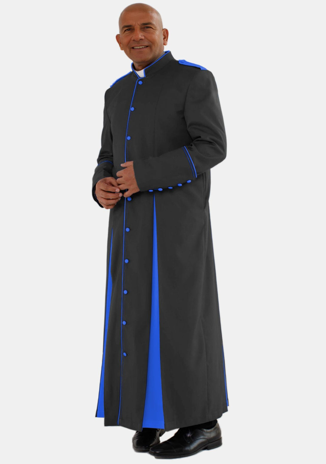 Serve with Confidence in the Haruz Clergy Robe for Men Black with Royal Blue Contrast