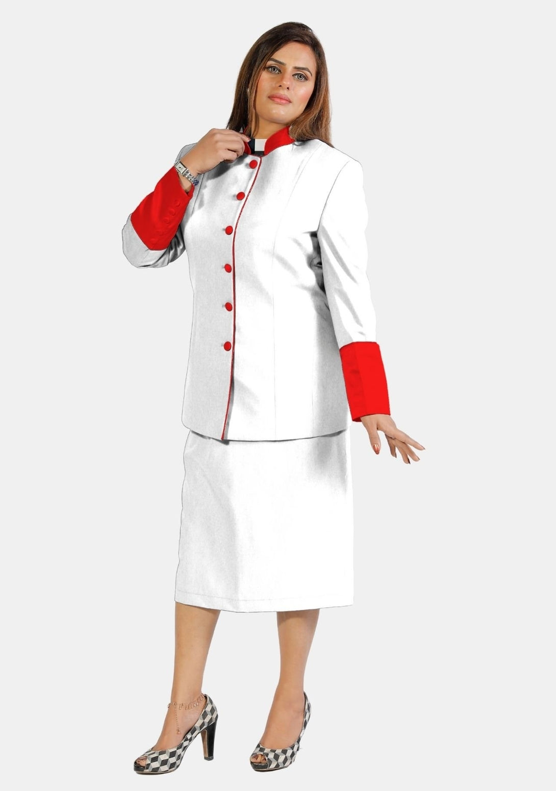 Die Priesterröcke für Damen in Weiß/Rot sind wichtige Outfits für Pfarrerinnen. Sie zeigen ihre besondere Rolle und Führungsrolle in der Religionsgemeinschaft. Diese Anzüge bestehen aus hochwertigen Stoffen wie Wolle oder Seide. Pfarrerinnen wirken professionell und respektvoll, da sie Stil und Bescheidenheit in Einklang bringen.