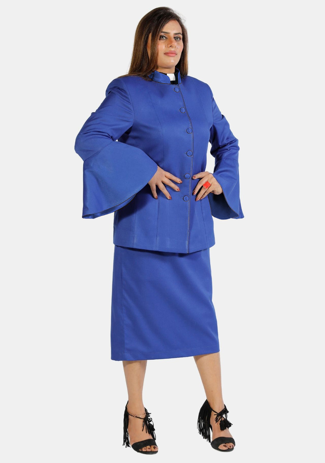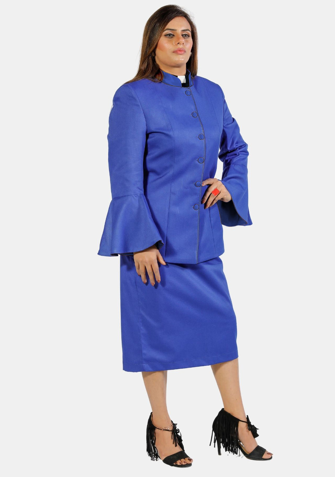 Empowerment mit Stil: Damen-Priesteranzug mit ausgestellten Ärmeln in Königsblau