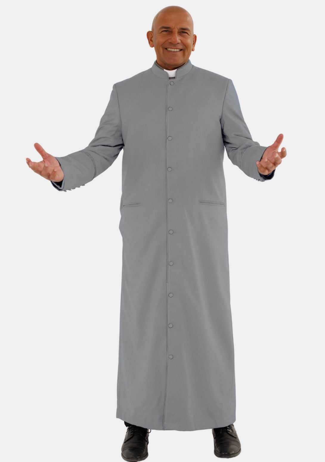 Wenn Ihr Outfit nicht passt, kann sich das negativ auf Ihr Wohlbefinden während des Gottesdienstes auswirken. Die Festus-Geistlichenrobe in Grau ist die perfekte Lösung. Sie besteht aus hochwertigem Stoff, der sich weich auf der Haut anfühlt und stundenlang bequem ist.