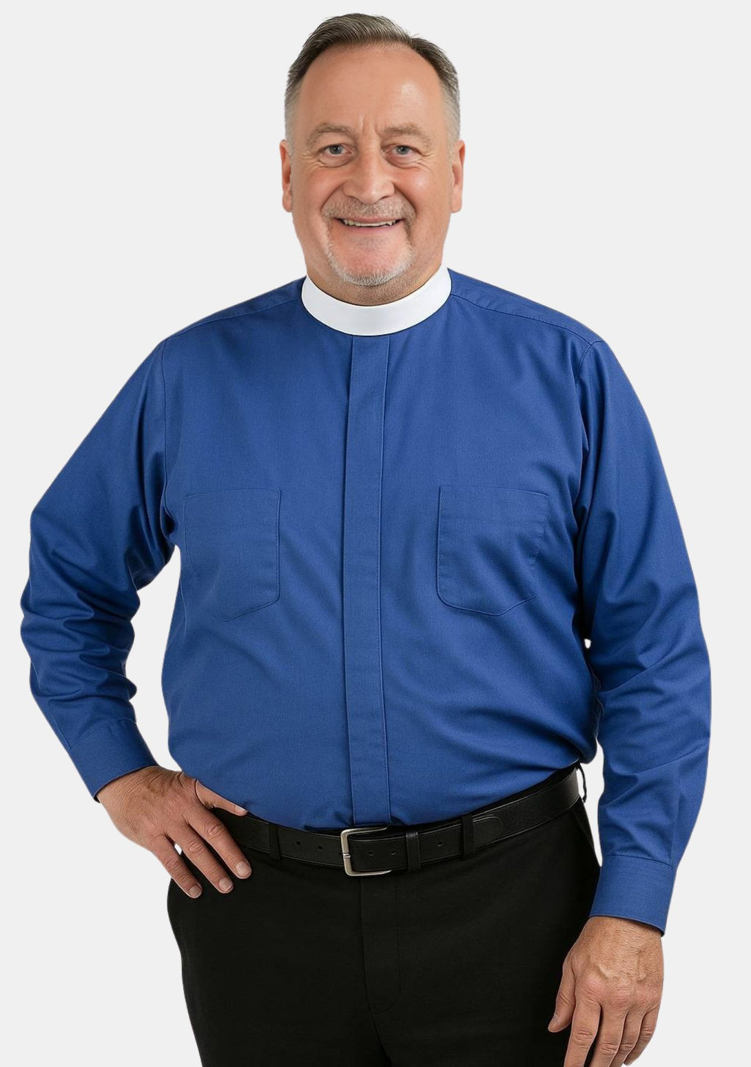 Führen Sie mit Anmut und Autorität in unserem königsblauen Geistlichenhemd mit vollem Kragen, perfekt für leitende Pfarrer.