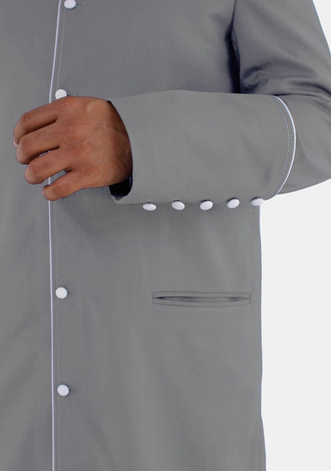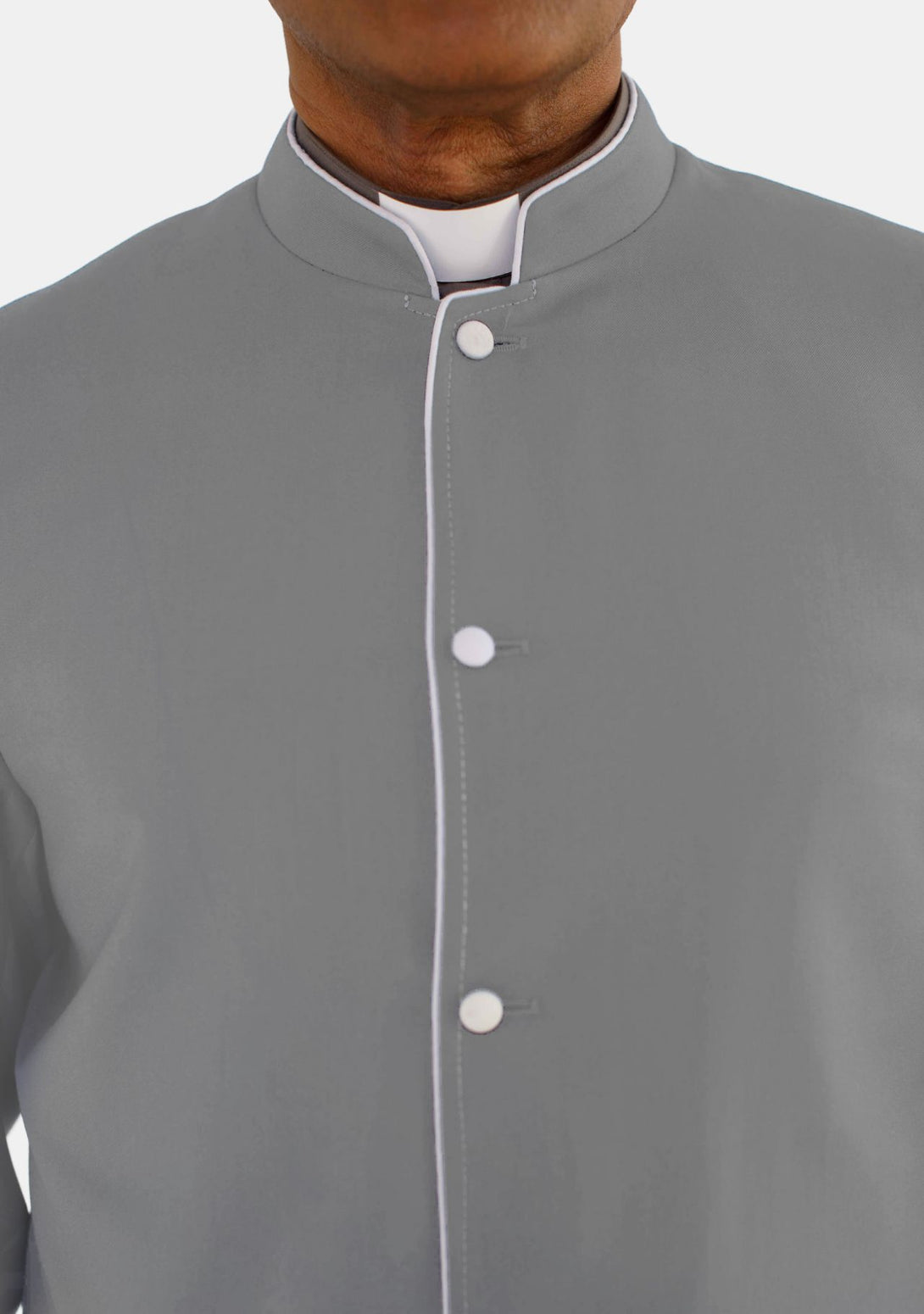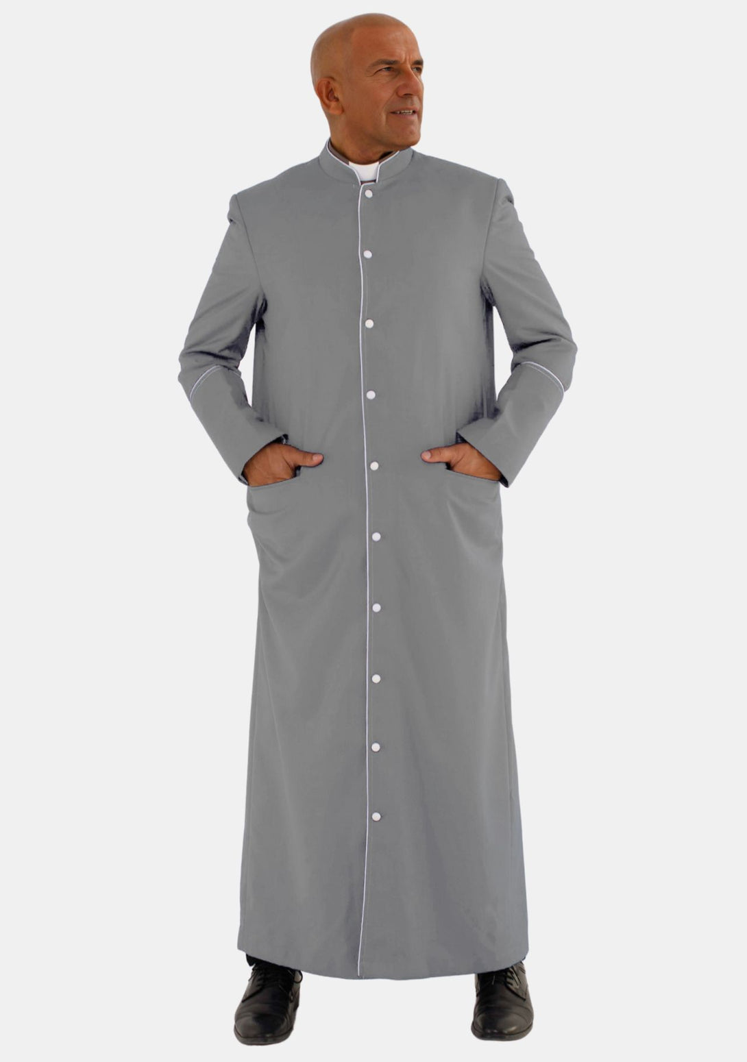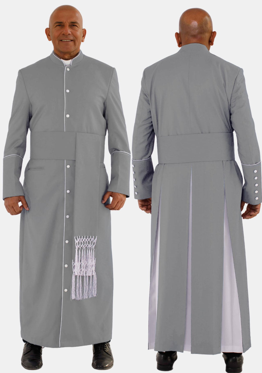 Tragen Sie die Gadiel-Geistlichenrobe in Grau mit Weiß. Jetzt einkaufen und auffallen!