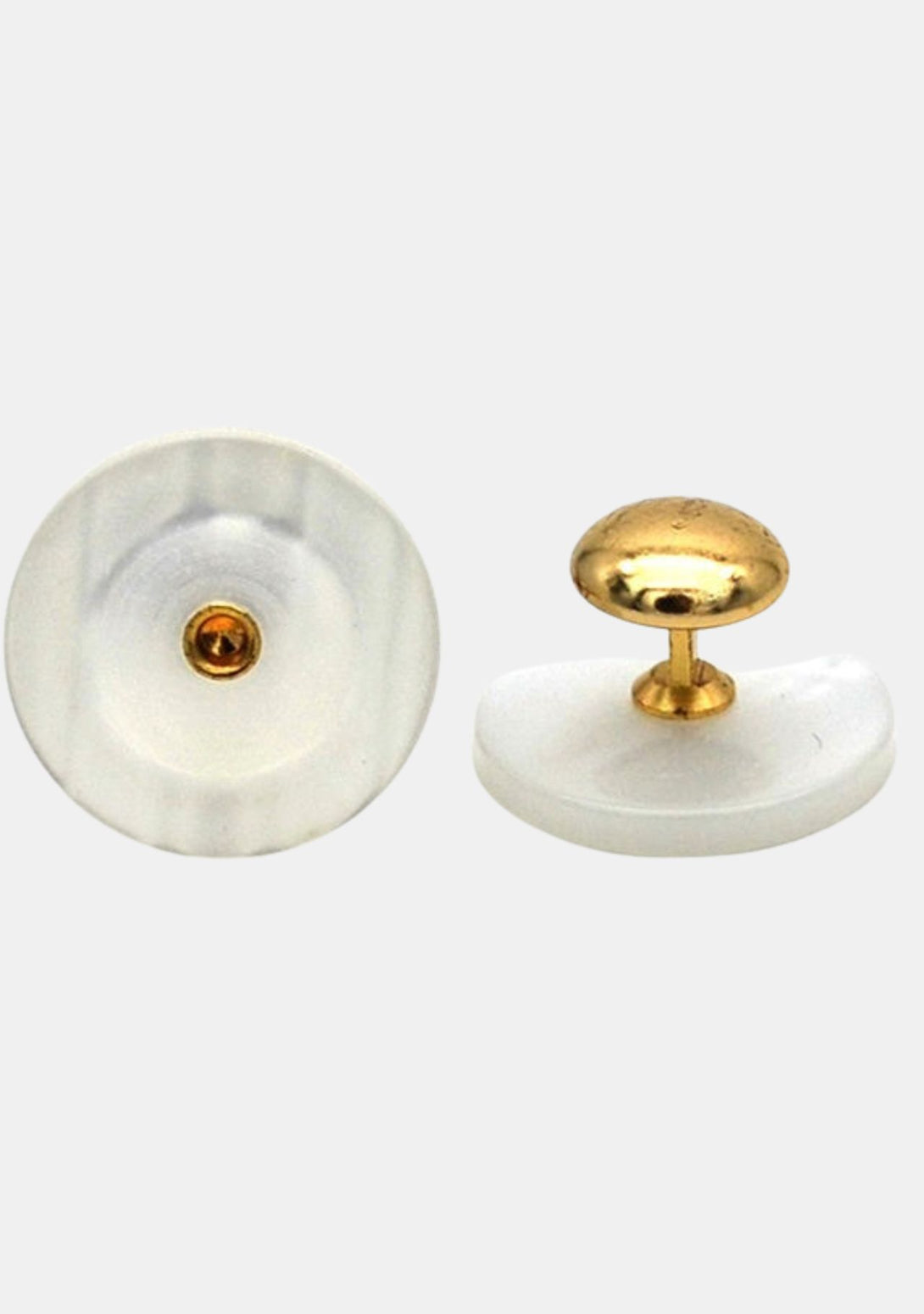 The Gold Plastic Tunic Shirt Collar Studs are a simple yet important accessory for clergy members. These studs help keep the collar of a tunic shirt in place, giving it a neat and dignified look. Whether you are preparing for Sunday service, a wedding, a baptism, or any special church event, these collar studs add a touch of grace and order to your clergy robe or tunic shirt.