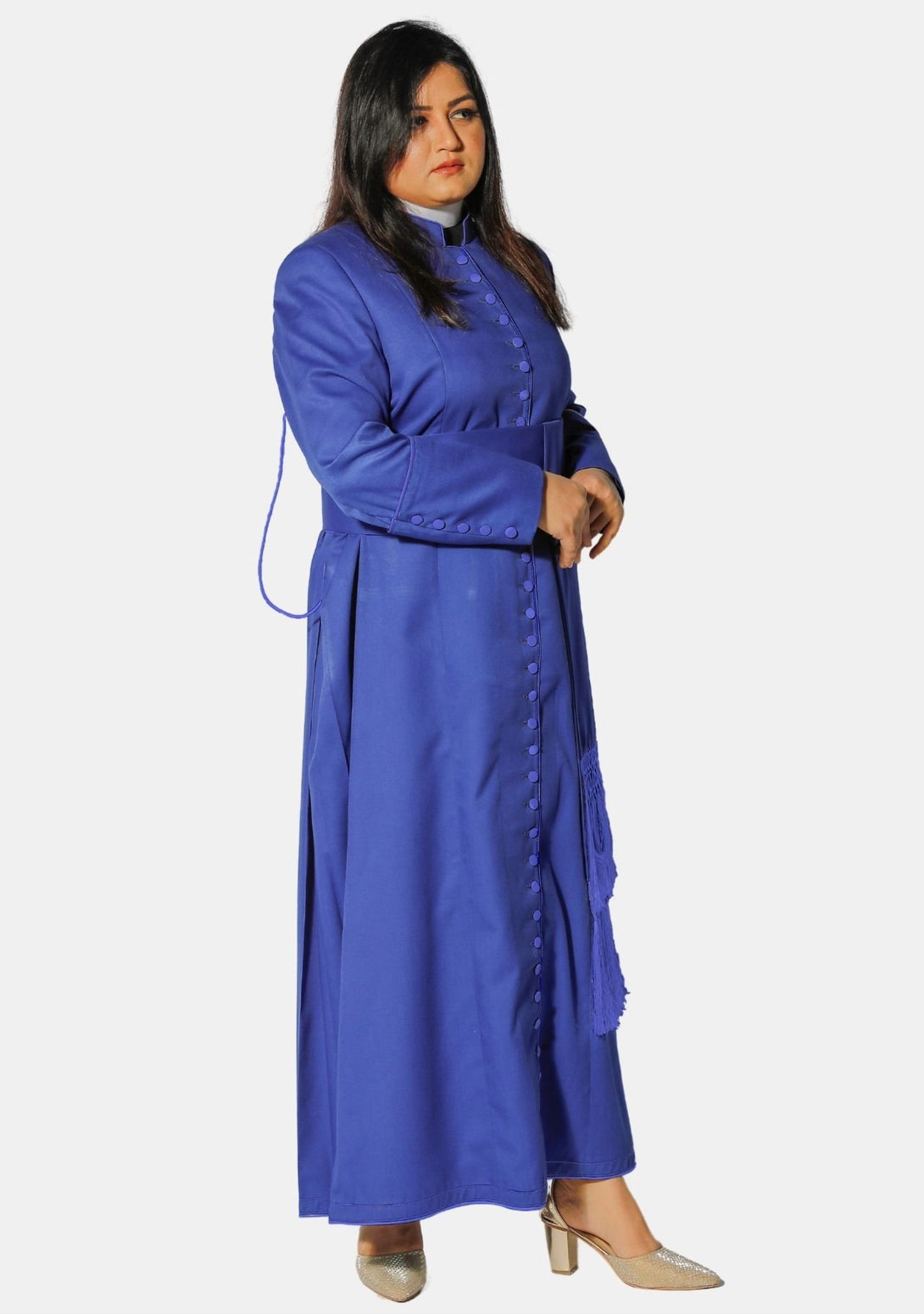 eClergys Blaue Damensoutane . Werten Sie Ihre geistliche Kleidung mit diesem eleganten und raffinierten Kleidungsstück auf. Mit viel Liebe zum Detail gefertigt, verleiht es Frauen im Klerus einen zeitlosen und würdevollen Look. Perfekt geschnitten und auf Komfort ausgelegt, ist diese Soutane ein Symbol für Anmut und Professionalität. Verkörpern Sie mit diesem exquisiten Stück Ehrfurcht und Ausgeglichenheit.