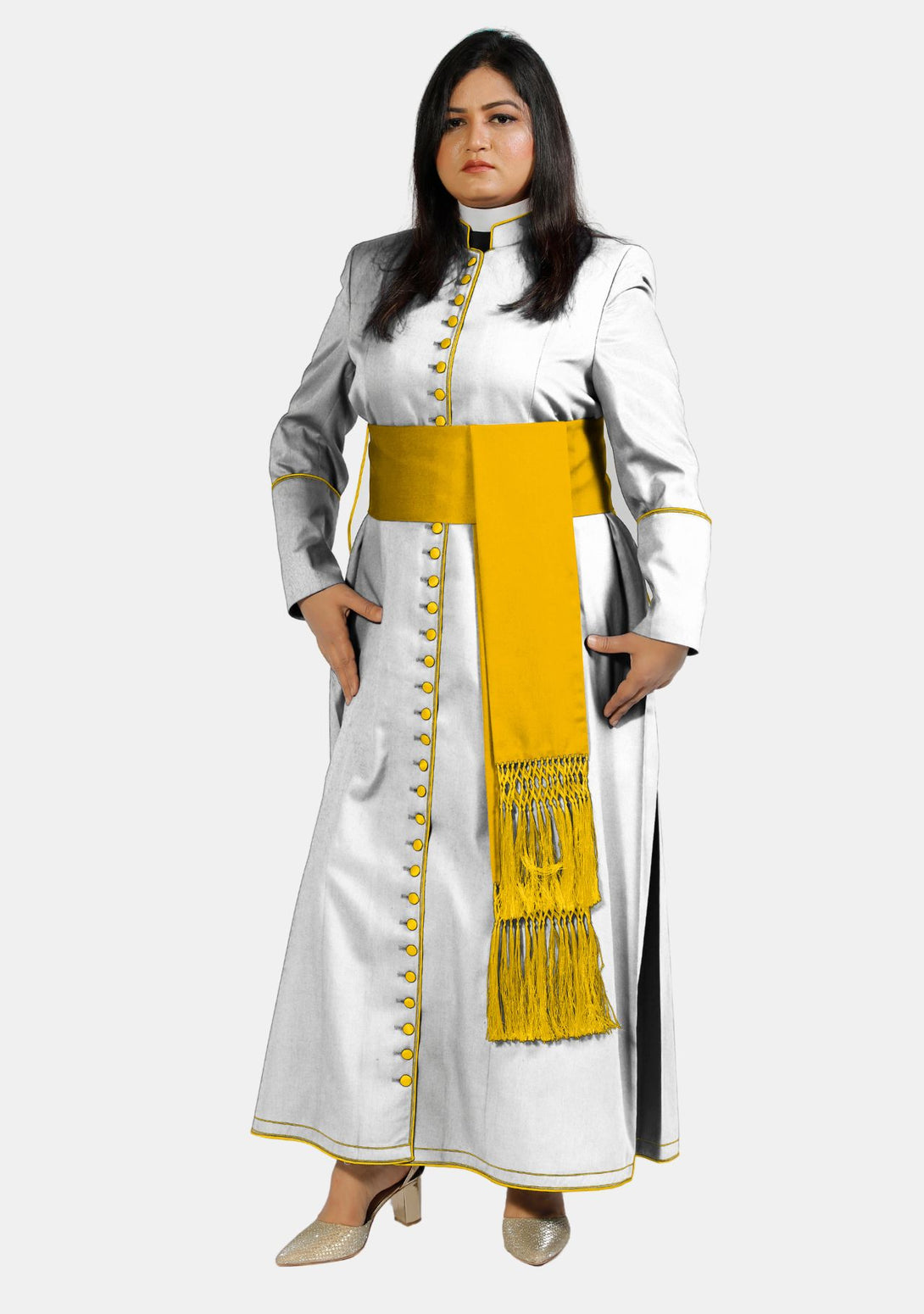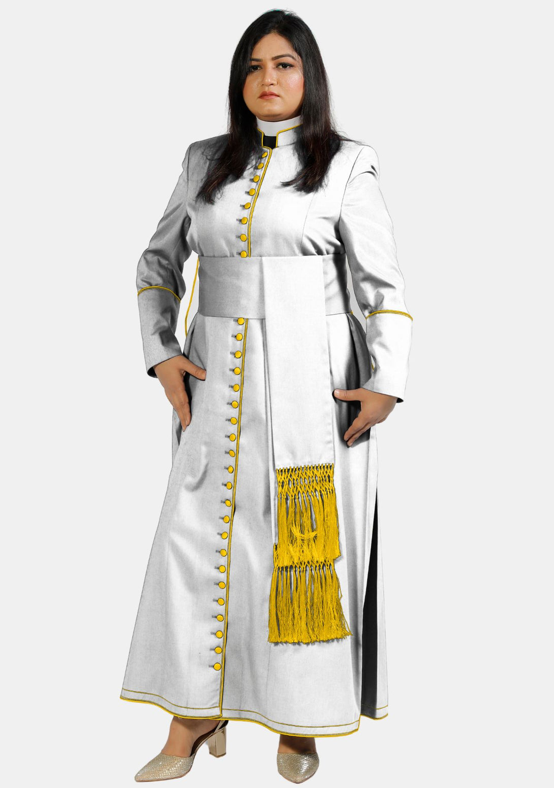 Leuchtende Liturgie-Soutane in Weiß für Frauen mit Goldbesatz
