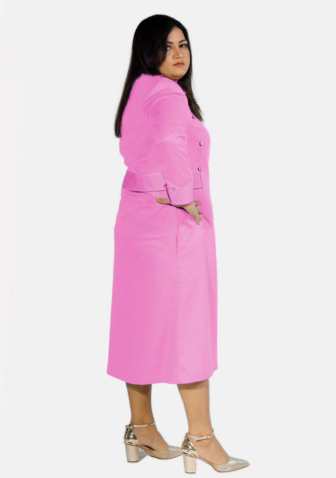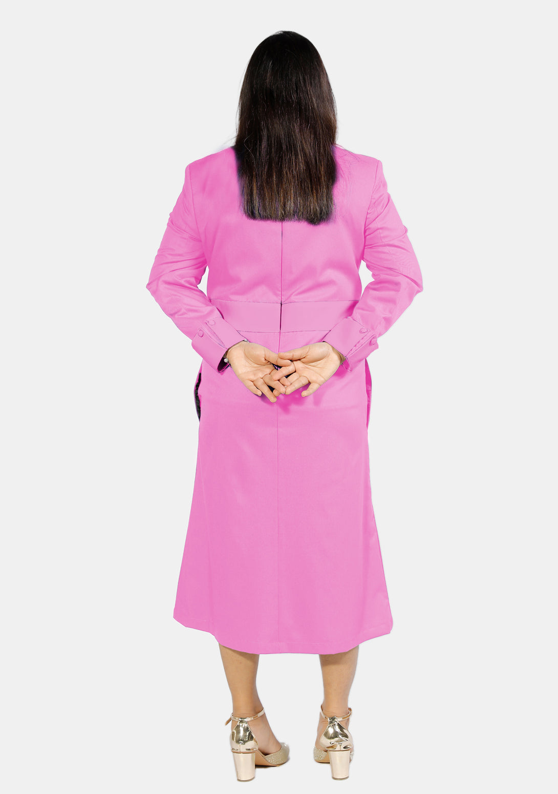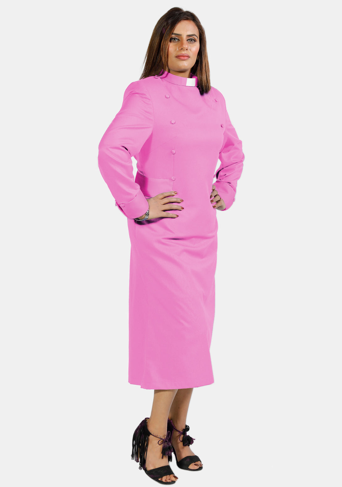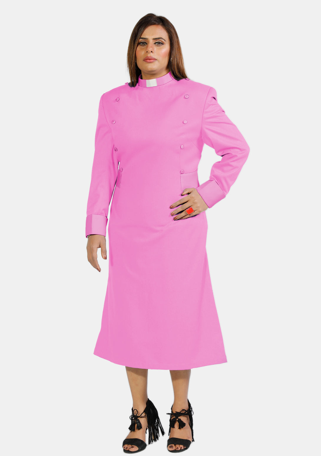 Bestellen Sie das rosafarbene Priesterkleid für Damen mit Designerknöpfen und gehen Sie mit Mode und Anmut voran.