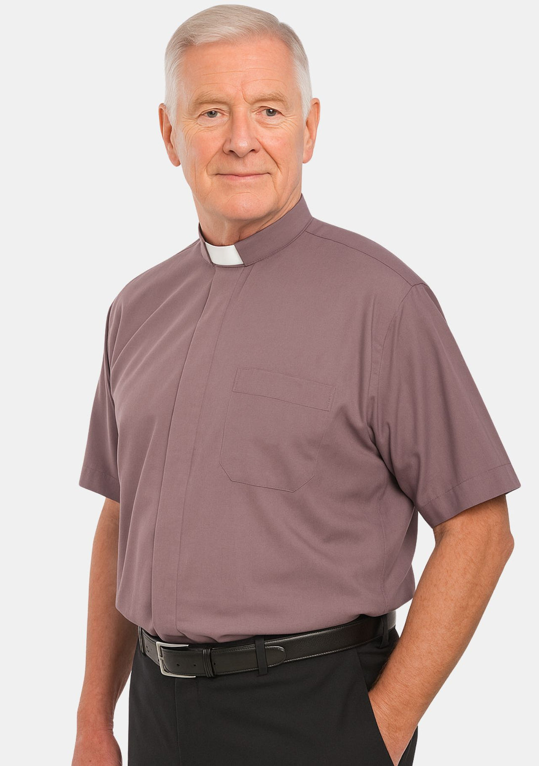 Dieses graue Priesterhemd mit Tab-Kragen und kurzen Ärmeln für Herren vereint sorgfältige Handwerkskunst, Liebe zum Detail und einfache Pflege und bietet sowohl Stil als auch Zweckmäßigkeit für Geistliche, die nach gehobener Kleidung suchen.